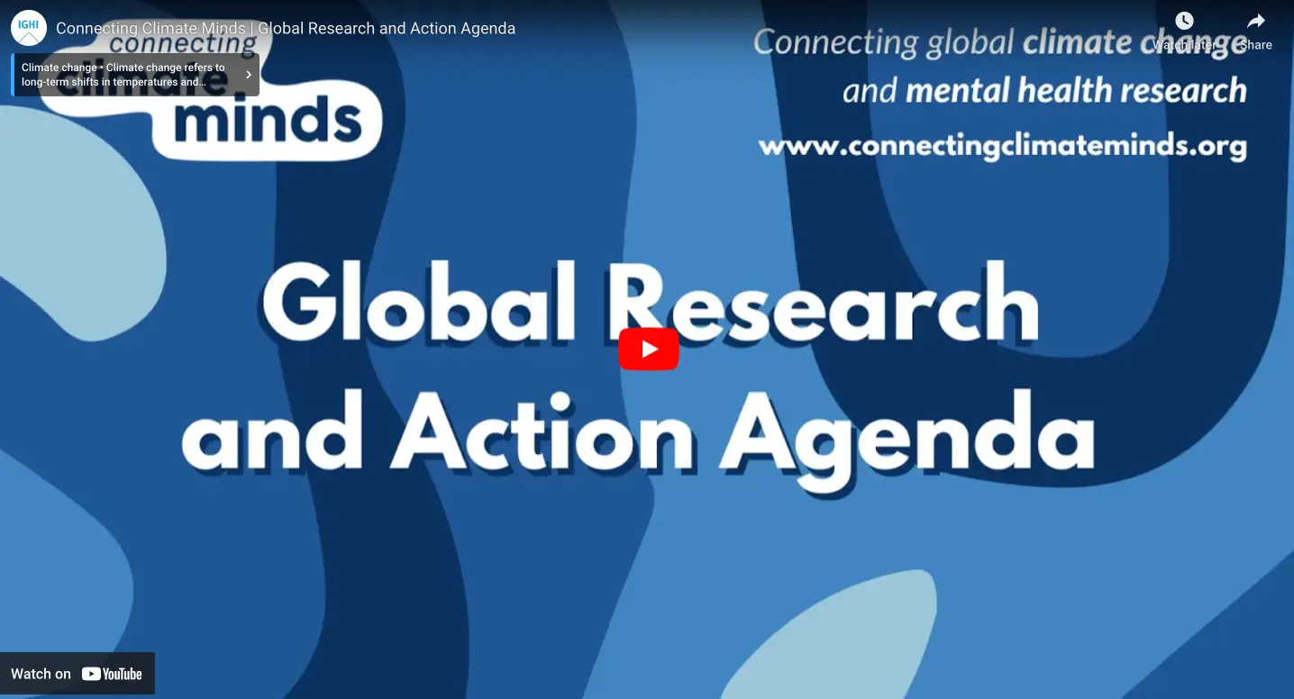 The Global Research and Action Agenda sets a vision for the climate and mental health field to understand and respond to the mental health consequences of a changing climate and ensure climate action promotes good mental health and wellbeing.